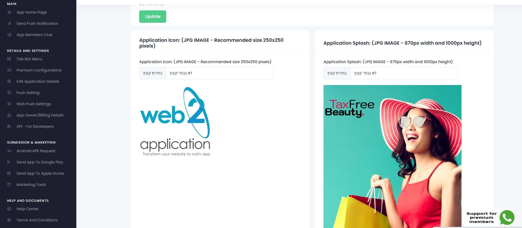 Neste ecrã, verá os detalhes da aplicação na parte superior. na parte inferior, verá o ícone da sua aplicação e o splash da aplicação.