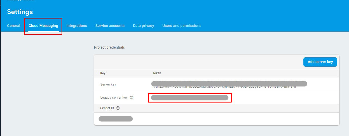 Passare all’area di messaggistica Cloud e copiare la chiave del server Legacy.