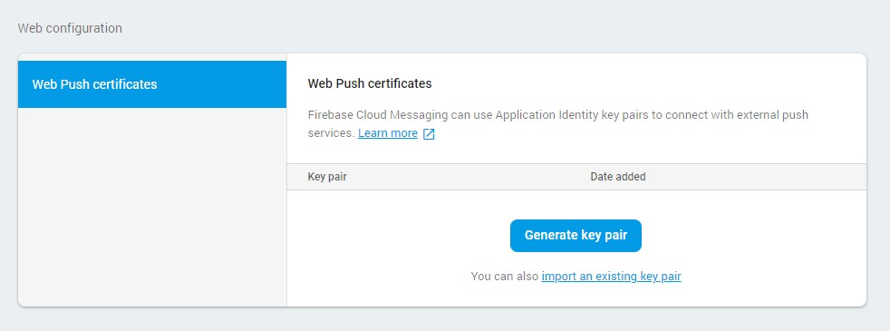 Scorrere fino alla fine della pagina e premere il pulsante Genera coppia di chiavi.