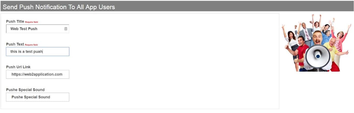 – Si noti che l’invio del push raggiungerà tutti gli utenti sul sito, nell’applicazione Android e nell’eventuale applicazione IOS.