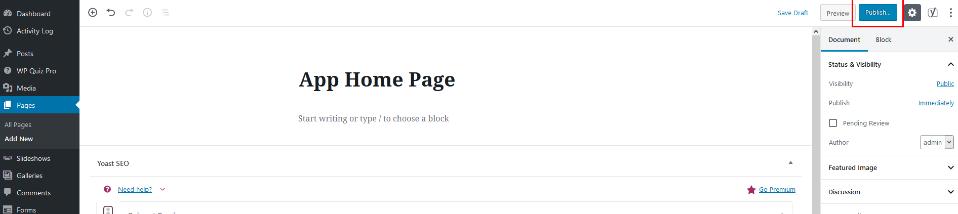 Premere “Pubblica” per salvare la pagina.
