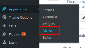 Nel menu principale della gestione di WordPress, fare clic su “Aspetto” e poi su menu.