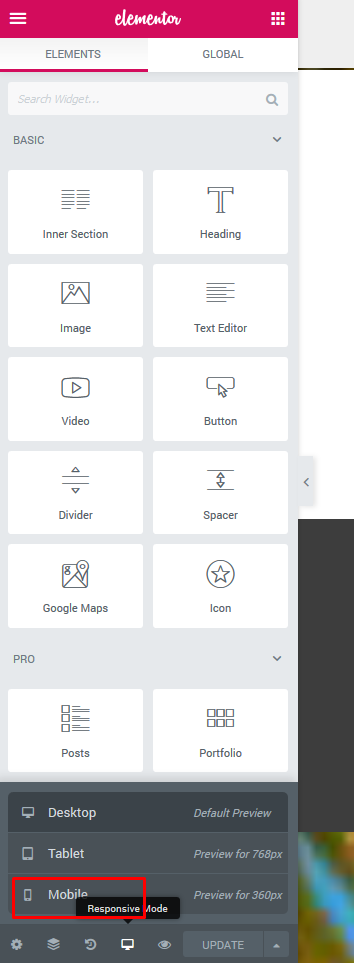 È molto importante, una volta aggiunti gli elementi della pagina, verificare l’aspetto della pagina in modalità responsive. ELEMENTOR consente la visualizzazione reattiva della pagina web e la possibilità di modificare e organizzare le impostazioni reattive passando a una modalità reattiva.