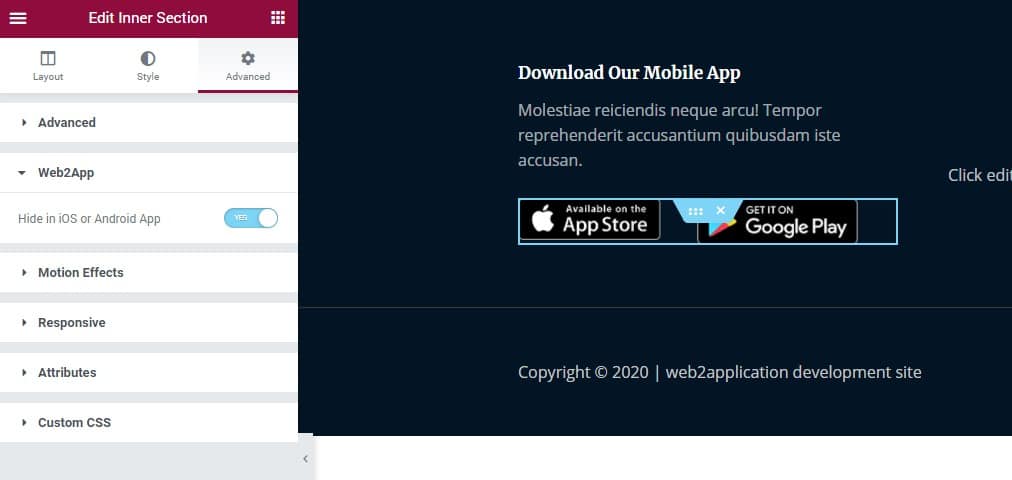 WIDGET DI WEB2APPLICATION IN ELEMENTOR