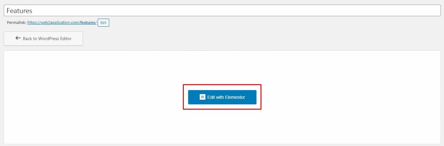 Dopo aver fatto clic su Pubblica, sarà disponibile il pulsante “Modifica con Elementor”.