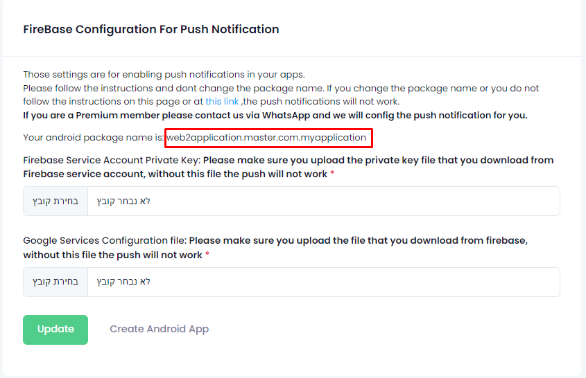 - Here you will be asked for your android package name. Go to your app dashboard and select “App Setting”.