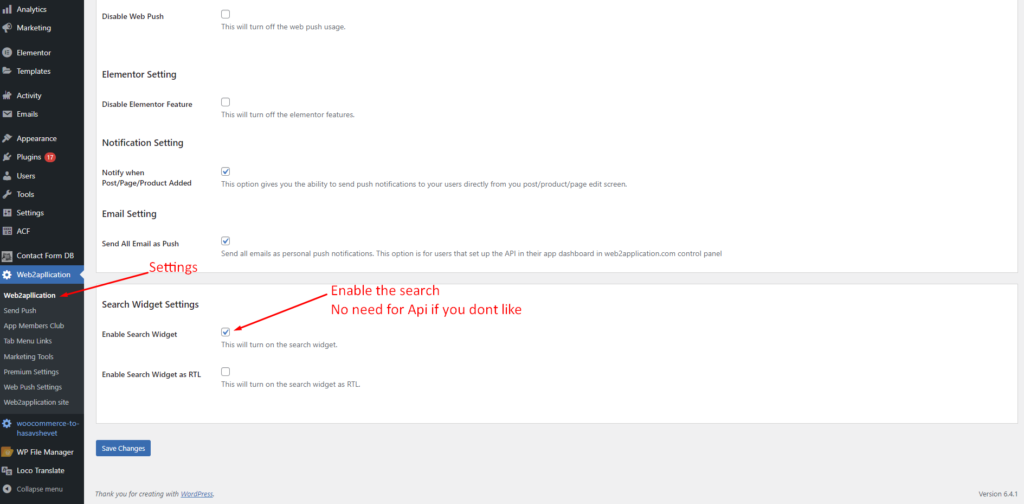 1. install the web2application plug-in from the plugin directory or from this link: https://wordpress.org/plugins/web2application/