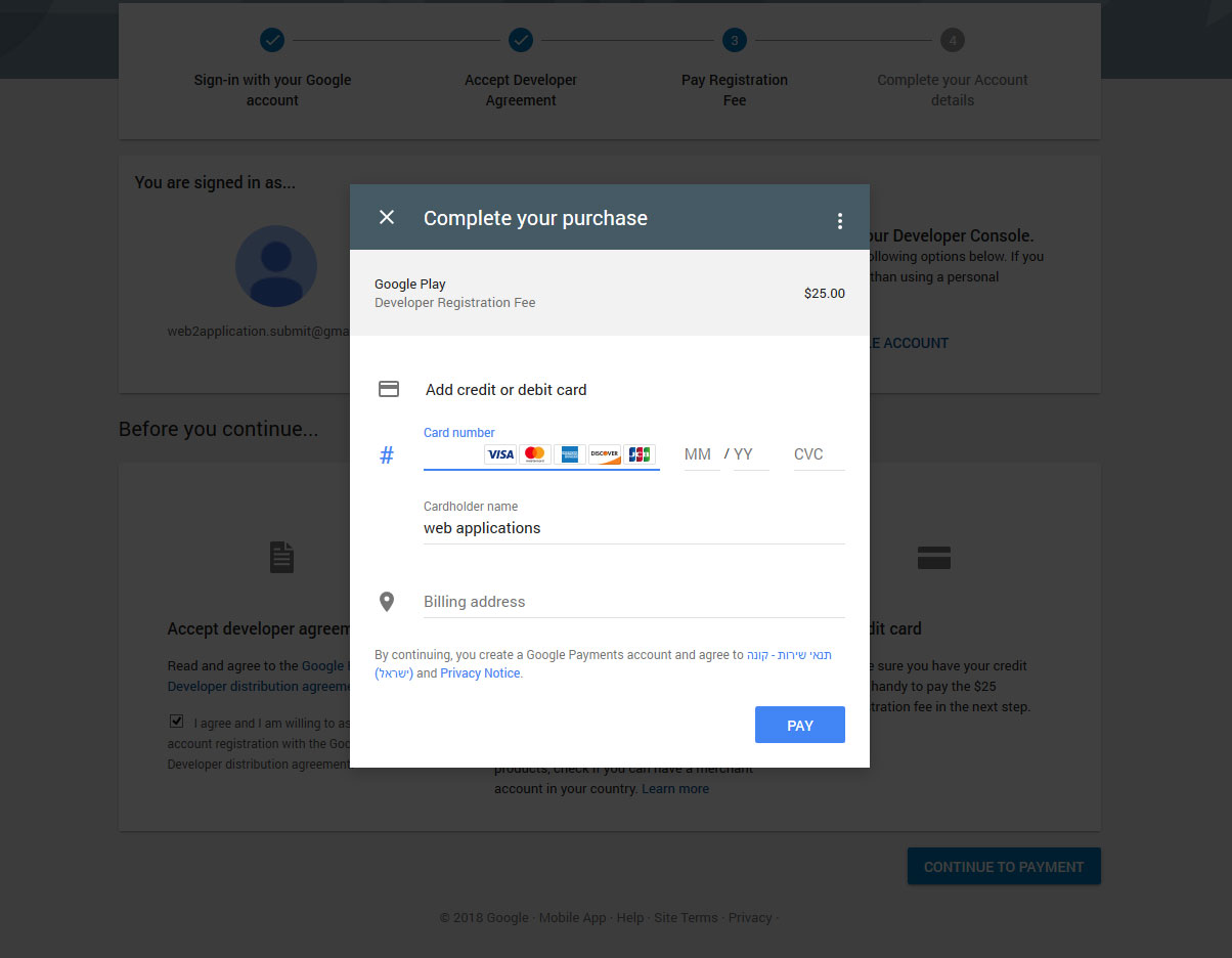 The process of opening a Google Account is fairly easy and costs only $ 25, a one-time payment to Google.