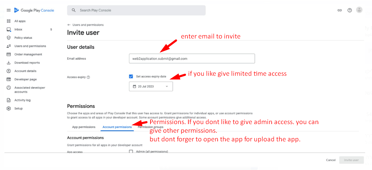 Share google play developer account access